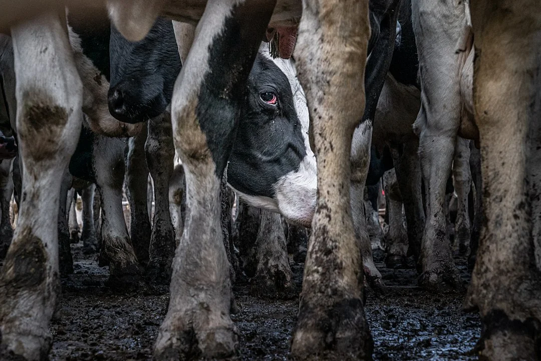 It’s almost impossible to encompass the scale of animal suffering today - precisely why most people don’t try. Between 80 to 100 billion, representing 60 percent of the world’s mammalian biomass, are killed for food every year. the vast majority after wretched lives in factory farms. Billions more used and discarded for entertainment, testing, in the illegal wildlife trade. HIDDEN itself is peppered with statistics but numbers are heady things. Figures such as “160 million: the global estimate of farmed animals transported to a slaughterhouse every day” only come to life when set alongside HIDDEN’s images. The scene inside a slaughterhouse truck after the cows have been unloaded - the floor sodden with shit and urine; another world, just visible through the vehicle’s oval windows - thrums with all its lost souls. This is storytelling at its most impactful.